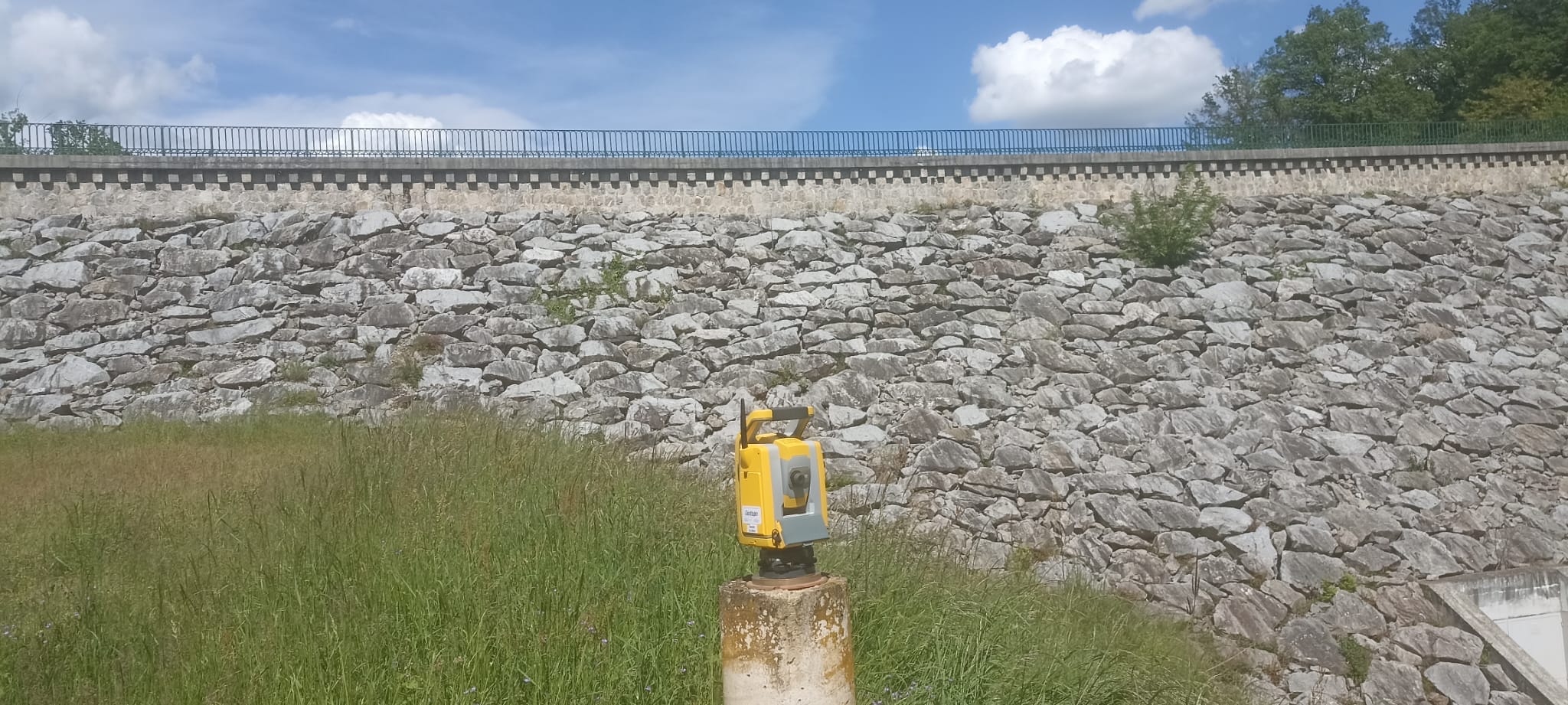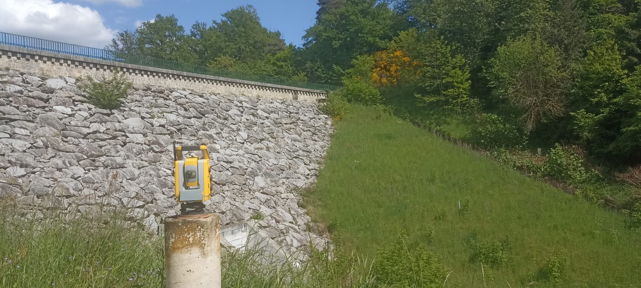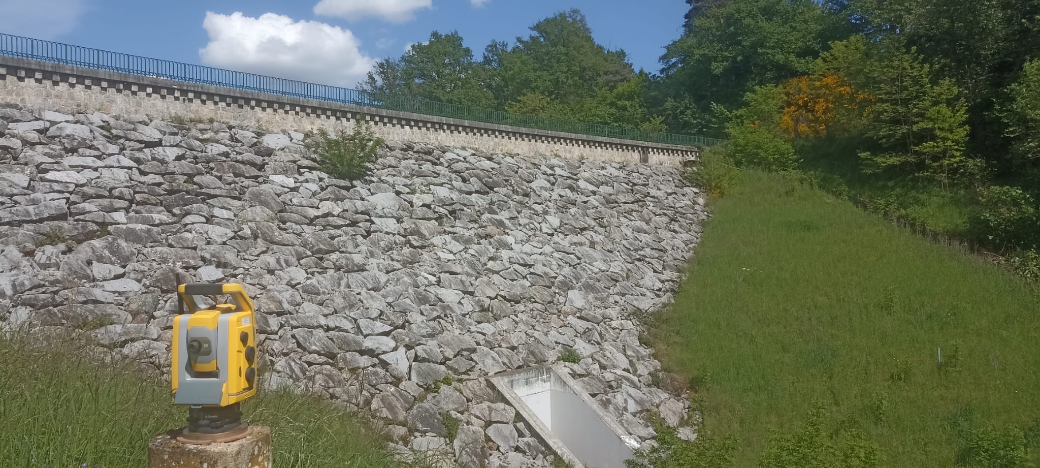 Depuis plusieurs années, nous assurons le suivi de la stabilité du barrage du Vérut, situé sur la commune de Saint-Galmier. Cette mission a débuté par la mise en place de repères fixes sur l’ouvrage, positionnés dans les trois dimensions. Chaque année, nous procédons à la vérification de la stabilité de ces repères et transmettons à la commune un rapport d’analyse détaillé.
